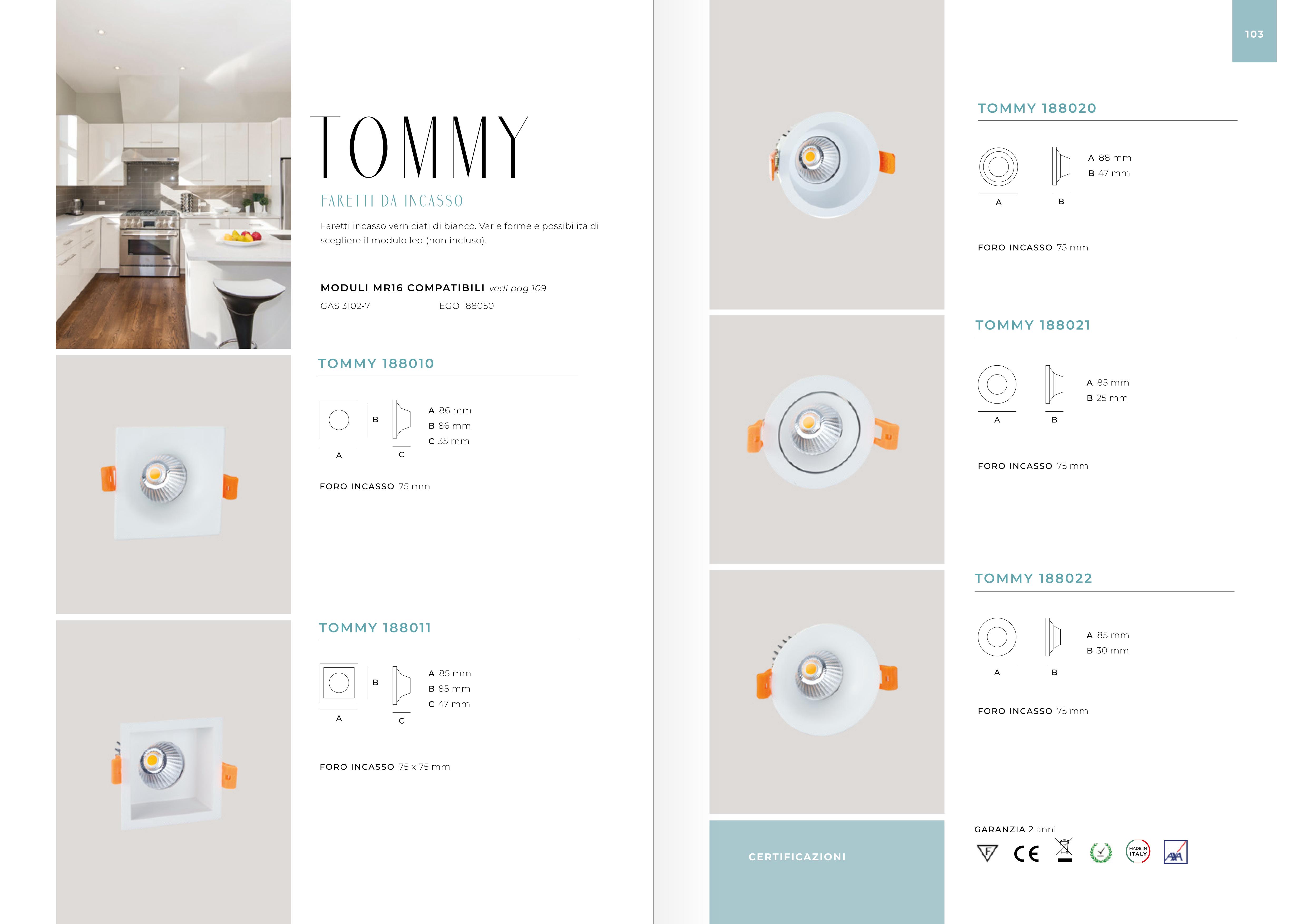 FARETTI INCASSO VERNICIATI BIANCO. DSPONIBILI IN VARIE FORME ED E’ POSSIBILE SCEGLIERE IL MODULO LED.