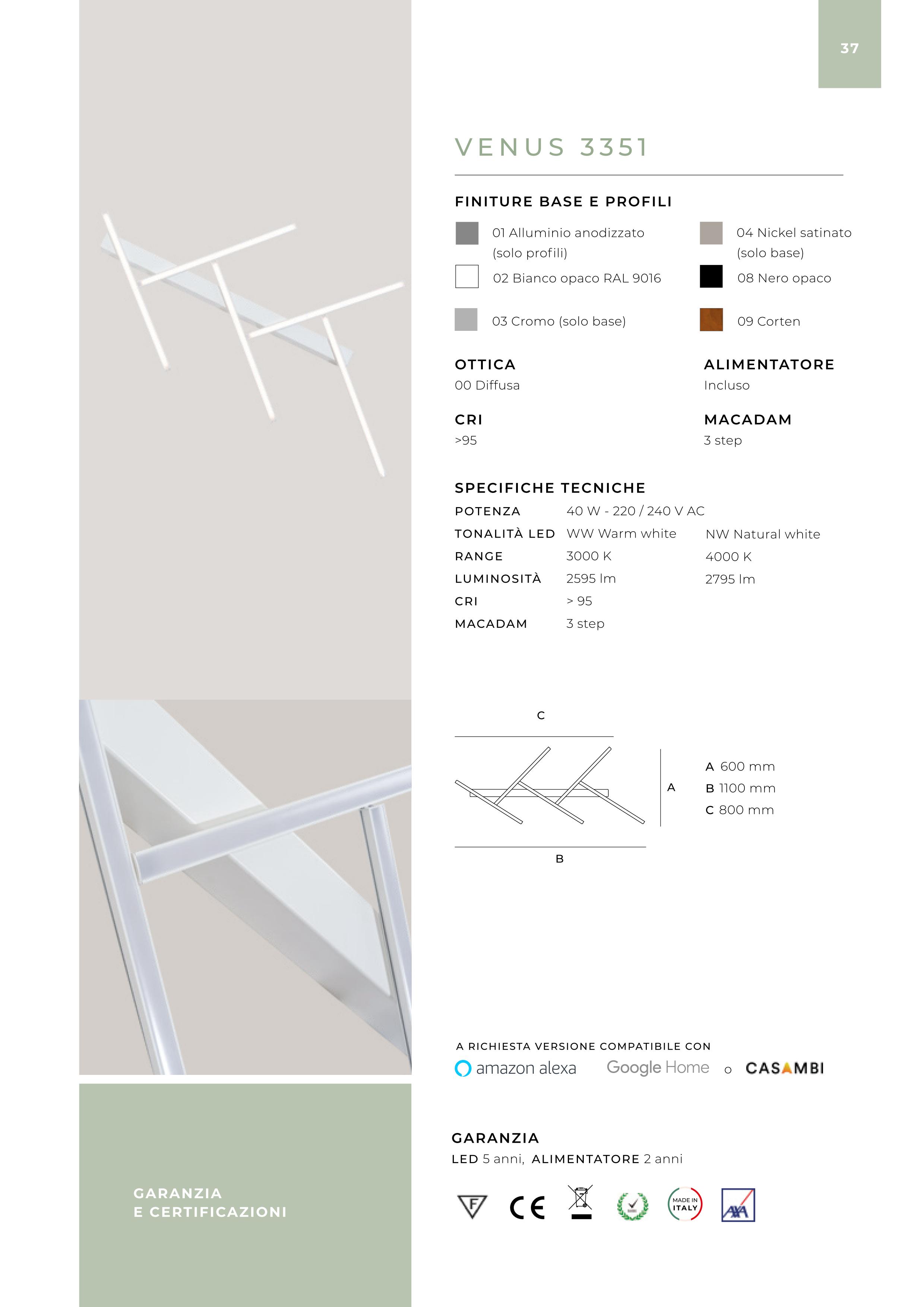 BASE: Bianco Ral 9016, Cromo, Nikel Satinato, Nero Opaco, Corten